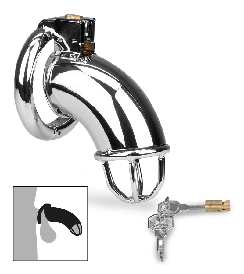 Mit dem Peniskäfig werden Sie zu einem Gefangenen Ihrer Lust. Ihr Partner oder Ihre Partnerin entscheidet ganz allein, wann Sie die Begnadigung verdienen. Der Keuschheitskäfig ist aus dem rigiden Material Edelstahl gefertigt und gibt nicht nach. Sobald der Käfig richtig sitzt, kann er nur noch mit dem mitgelieferten Schlüssel wieder geöffnet werden. Der Peniskäfig verfügt über eine Öffnung an der Spitze.