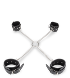 Die Kreuzfessel mit den vier verschließbaren Manschetten lässt Sie eine neue Facette des erotischen Spiels entdecken. Die vier Fesseln fixieren Hand- und Fußgelenke, sodass Sie sich nur noch sehr eingeschränkt bewegen können. Der O-Ring, an dem die vier Ketten der Hand- und Fußfesseln zusammenlaufen, kann sich dabei auf der Vorder- oder auf der Rückseite des Körpers befinden. Je nachdem, welche Stellungen Sie bei Ihren BDSM-Spielen bevorzugen. Die maximale Distanz zwischen zwei Fesseln liegt bei 40 cm. Ihre Bewegungsfreiheit wird also deutlich eingeschränkt. Im Lieferumfang sind zwei Schlüsselsätze enthalten, mit denen Sie die Schlösser an den vier Fesseln jeweils auf- und abschließen können. Zur Vervollständigung des Looks empfehlen wir Ihnen das richtige Outfit aus unserem Shop. Wenn Sie auf Lack und Leder stehen, dann finden Sie bei uns schwarz glänzende BDSM-Outfits oder Dessous im Wetlook!