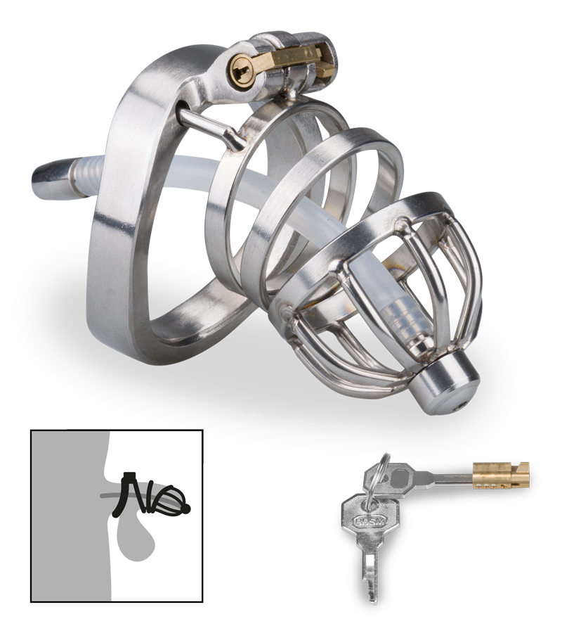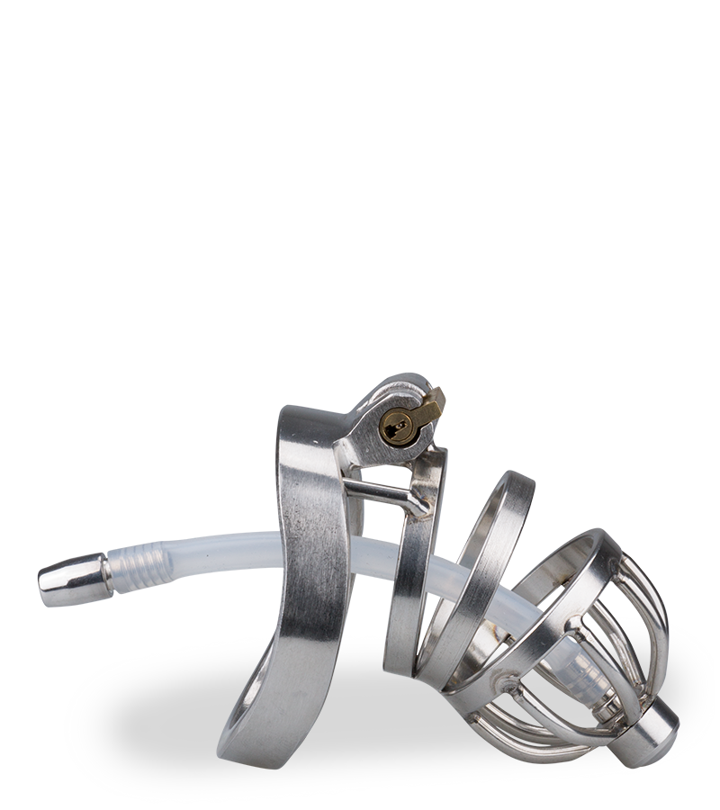 Wenn Sie diesen Penis-Käfig über Ihr bestes Stück ziehen, können Sie Ihre Lust nicht mehr ausleben. Die gekrümmte Form lässt keine Erektion zu und bestraft Sie für Ihre sündigen Gedanken. Die Stäbe sorgen für die nötige Belüftung, damit Sie den Penis-Käfig möglichst lange tragen können. Der Harnröhrenplug ist innen hohl. sodass Sie trotz Penis-Käfig urinieren können. Abgeschlossen wird der Penis-Käfig mit dem praktischen Magic-Lock-System. Damit benötigen Sie kein Schloss und der Penis-Käfig lässt sich sehr angenehm tragen und ist unter der Kleidung nicht zu sehen.