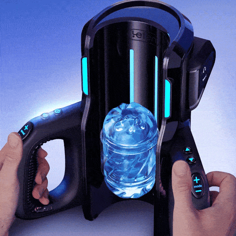 - Punktgenaue Ultrahochfrequenz-Kolbenwirkung für präzise Stimulation. Innovatives Waffenregaldesign mit austauschbaren Griffen, das Kontrolle in jeder Position bietet.
