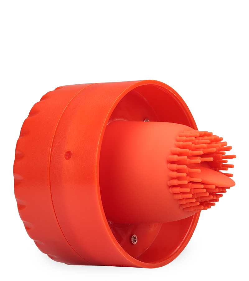 Von oben sieht der Masturbator aus wie ein klassischer Vagina-Masturbator. Realistische Schamlippen und ein genoppter Lustkanal erzeugen bei Ihnen ein absolut authentisches Gefühl. Wenn Sie besonders tief in den Lustkanal eindringen, bekommen Sie die Besonderheit dieses Sexspielzeugs zu spüren. Denn dann kommen Sie in den Genuss einer zusätzlichen Stimulation: Eine genoppte Zunge macht sich an Ihrer Penisspitze zu schaffen. Auf Knopfdruck kann die Zunge sogar vibrieren!