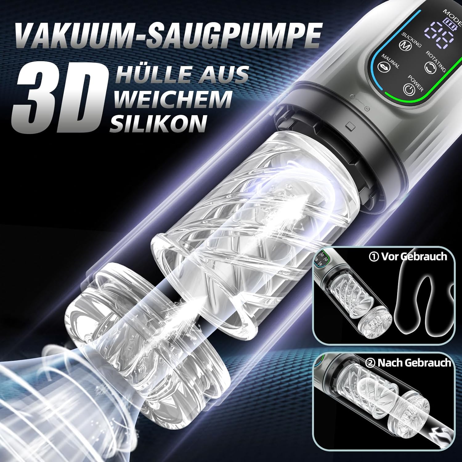 • 【Tragbarer 3-in-1-Automatik-Masturbator für Männer + Penispumpen-Vergrößerungstraining】 Unser neu verbesserter Masturbator für Männer verfügt über 7 erstaunliche Saug-, Leck- und Rotationsmodi sowie eine einzigartige Spa-Massagefunktion! Damit Sie Ihre Hände frei haben, stellen wir Ihnen auch angenähte, tragbare Hosen zur Verfügung. Sie können dieses Sexspielzeug ganz einfach mit nur einer Berührung des LED-Displays steuern und Ihr sexuelles Paradies betreten. Ist das nicht der Schatz deiner Träume?