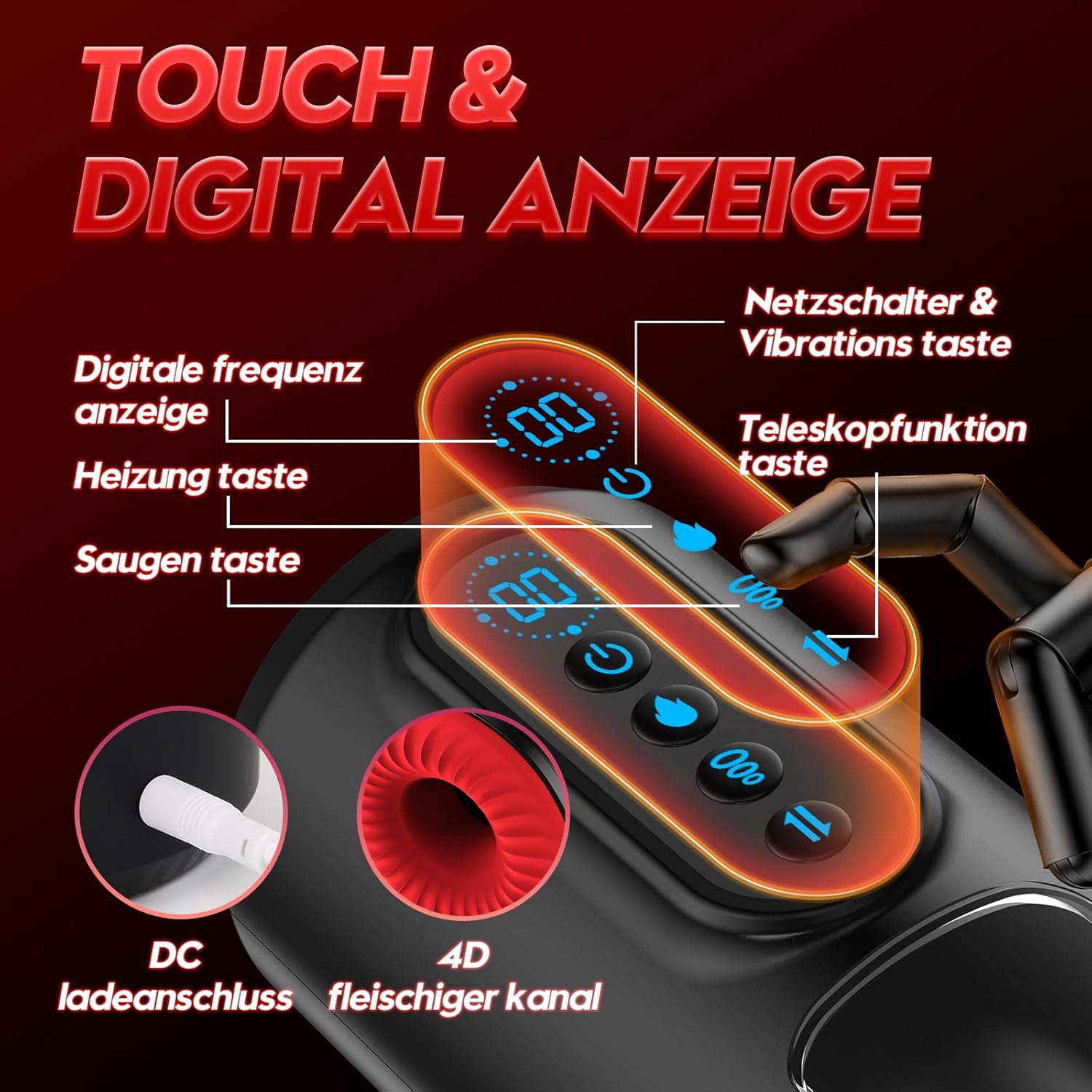 - 【Ergonomisches Design Sex Spielzeug für die Männer mit 9 Saugen & Teleskopische & Vibrationsmodi】 Unser neu aufgerüsteter Masturbator für Männer bietet 9 Saugen 9 Teleskopische und Vibrationsfunktionen sowie eine einzigartige Heizfunktion! Fügen Sie eine superweiche und unglaubliche Textur hinzu, damit Sie jederzeit unterschiedliche Erregungen spüren! Das LCD-Display und die Touch-Tasten erleichtern die Steuerung der Geschwindigkeit dieses Sexspielzeug. Alles entspricht Ihren Bedürfnissen!