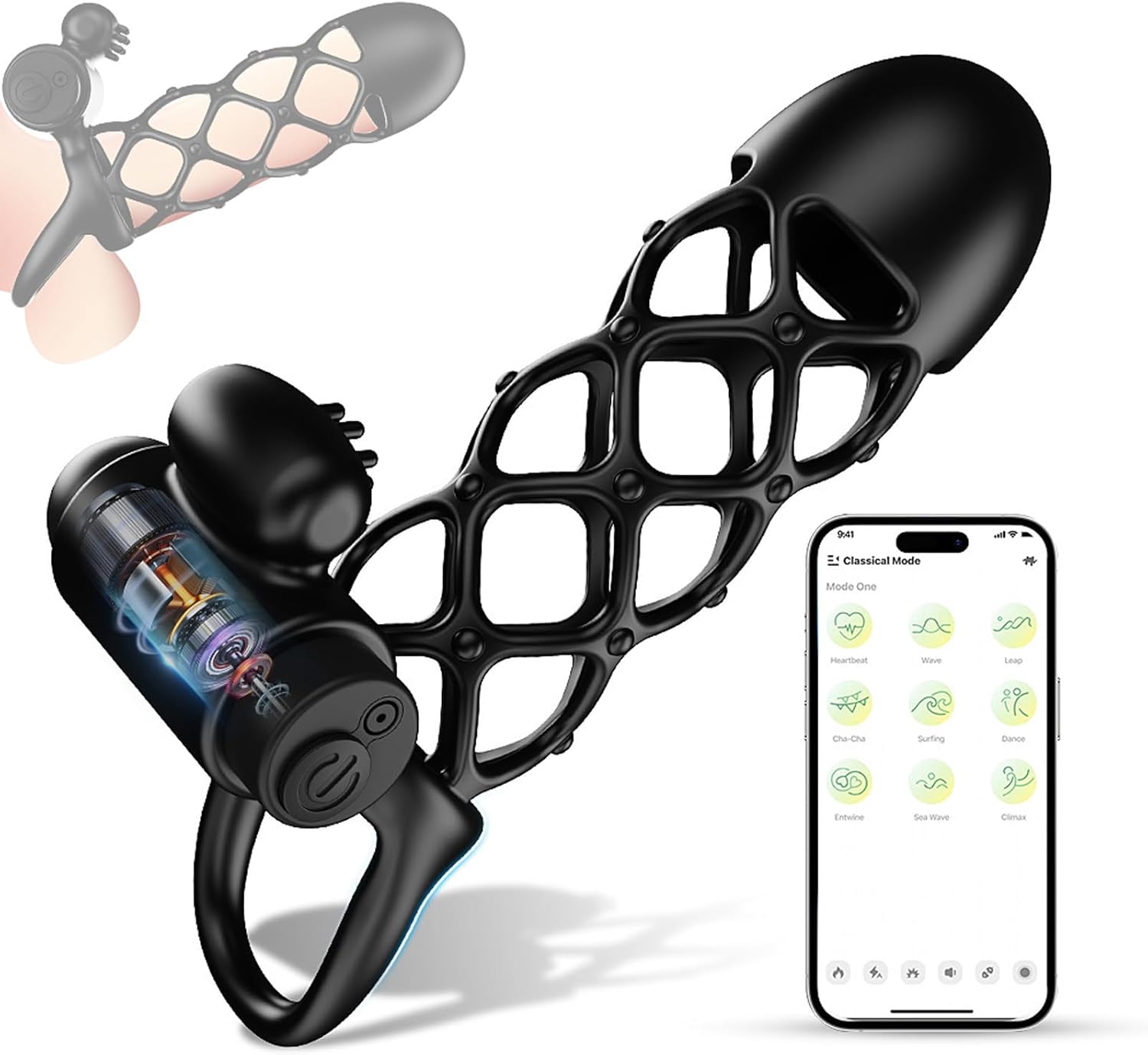 Penishülle Penisring Vibrator mit 10 Vibrationsmodi für Penis Klitoris G-Punkt, Silikon Penis Sleeve Cockring, Penismanschetten für Penisverlängerung Sex Spielzeug für die Männer Paare