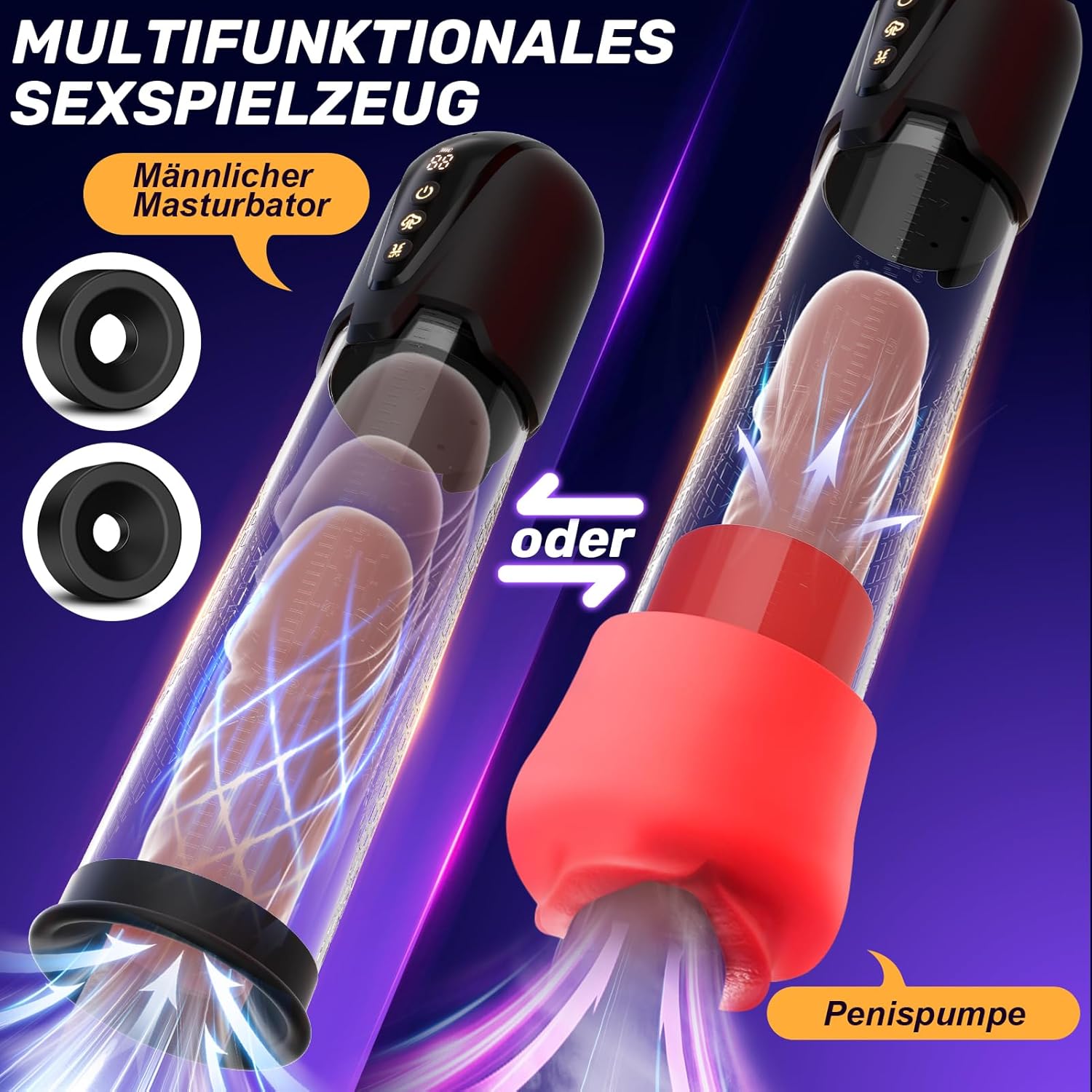 Penispumpe für Penisvergrößerung Elektrische Penis Pumpe Vakuumpumpe Sex Spielzeug für die Männer mit 3 Vakuum Trainingsmodi 6 Saugmodi,Taschenmuschi Masturbator Sex Toy mit 2 Silikonhülsen