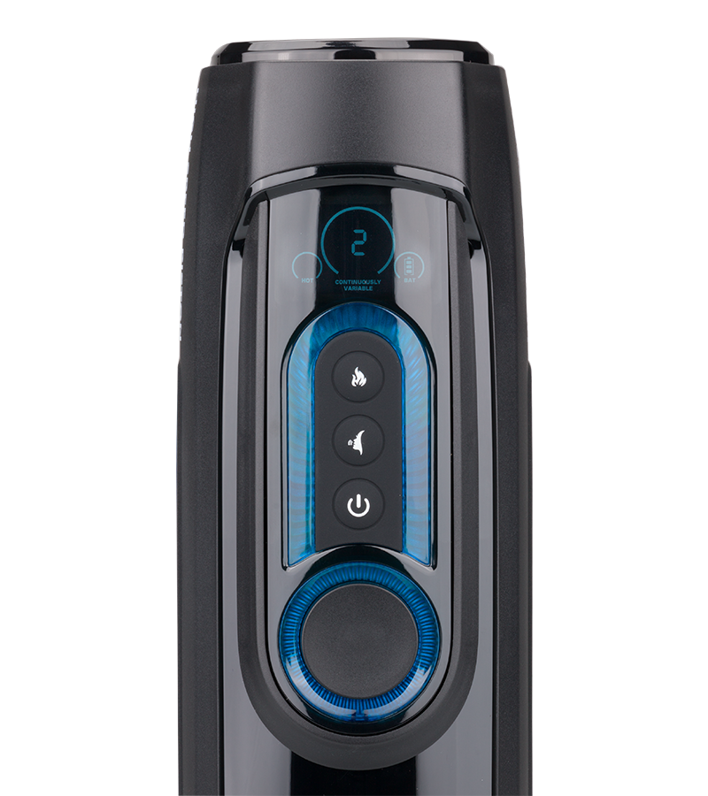 7. Drehen Sie an dem Rädchen unterhalb der Power-Taste, um die gewünschte Intensität der Auf- und Abbewegung einzustellen.